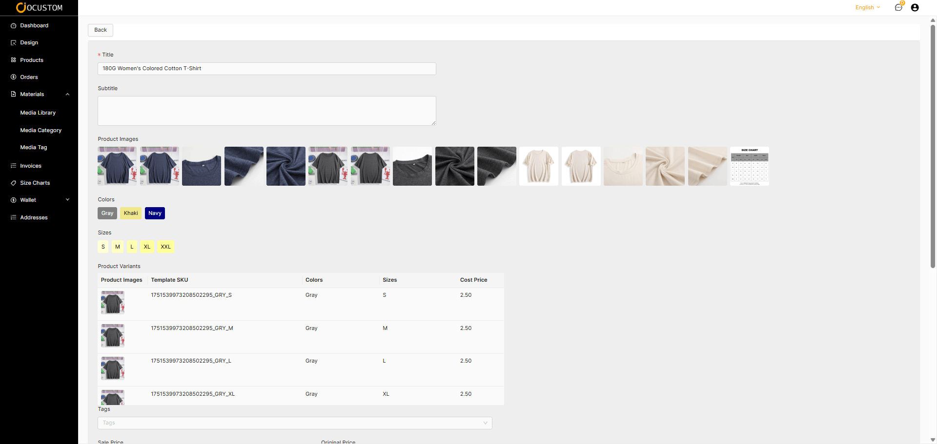 The basic template information you edit will be automatically populated into products customized using this template in the future.