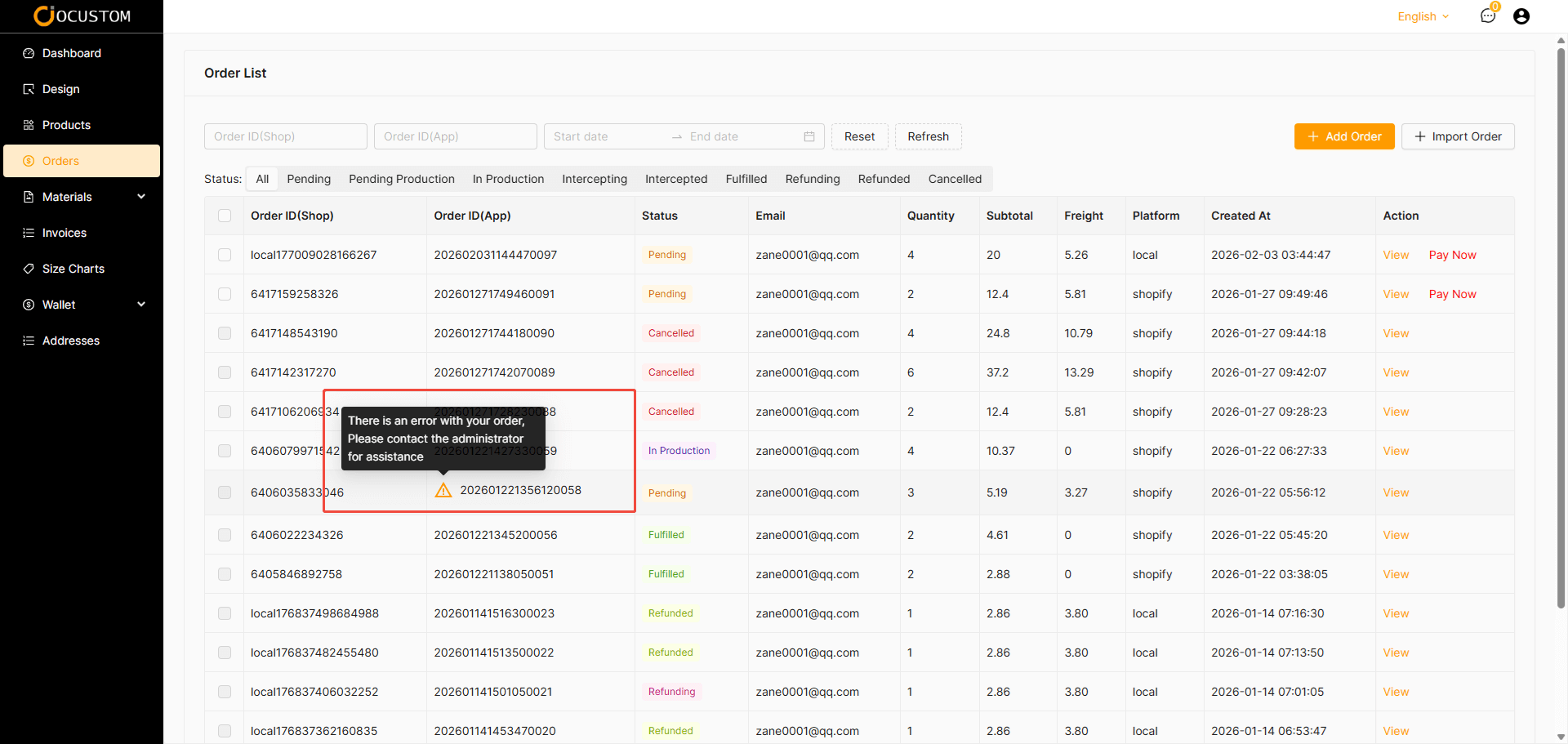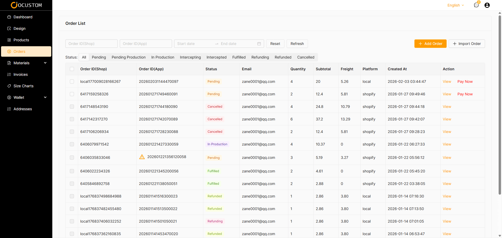 - Pending Production - Order cost price paid and order pushed to factory, but factory has not confirmed