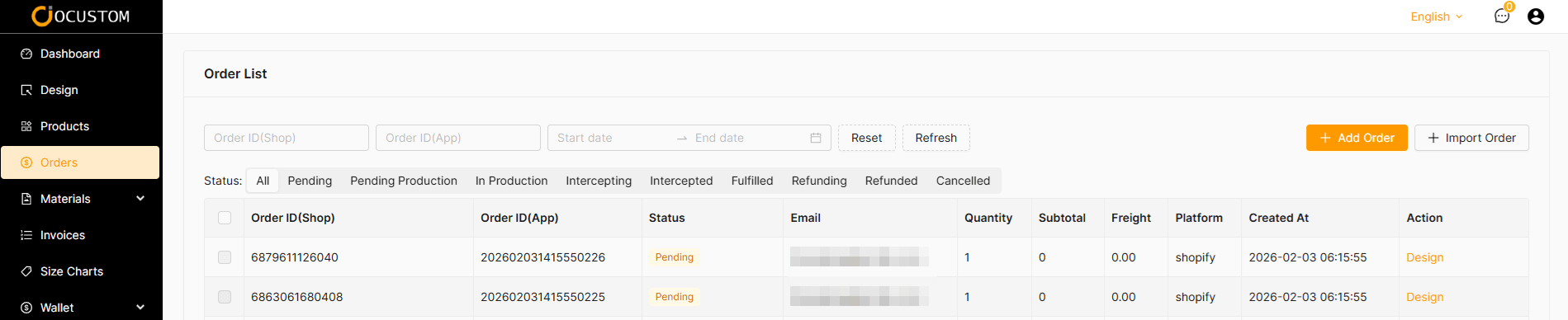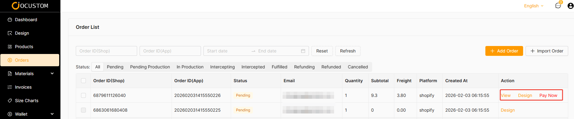 Orders imported successfully can still be designed, but orders with successful payments can only be viewed.