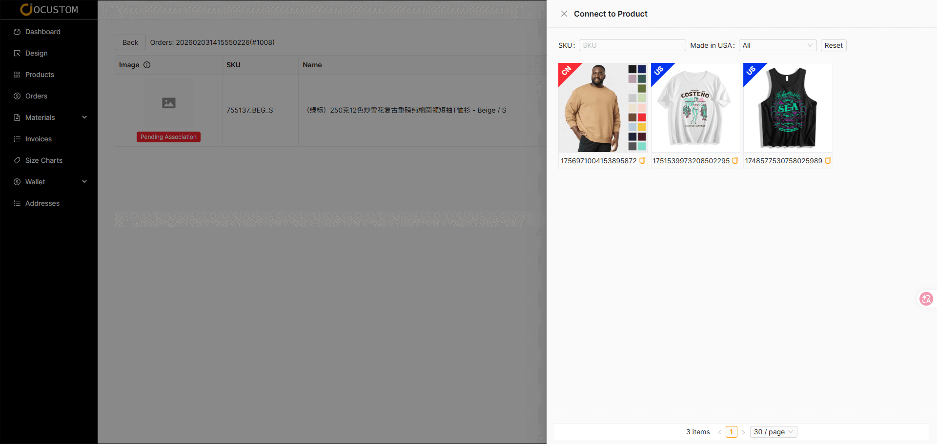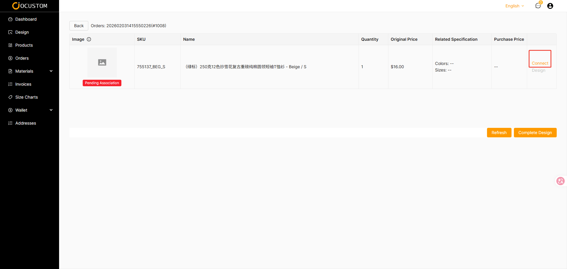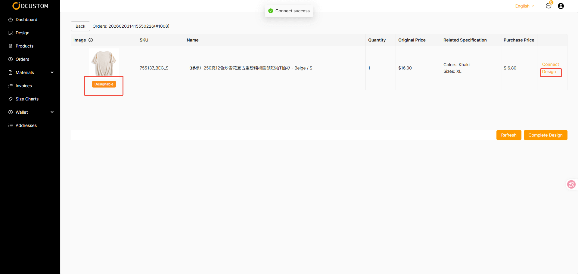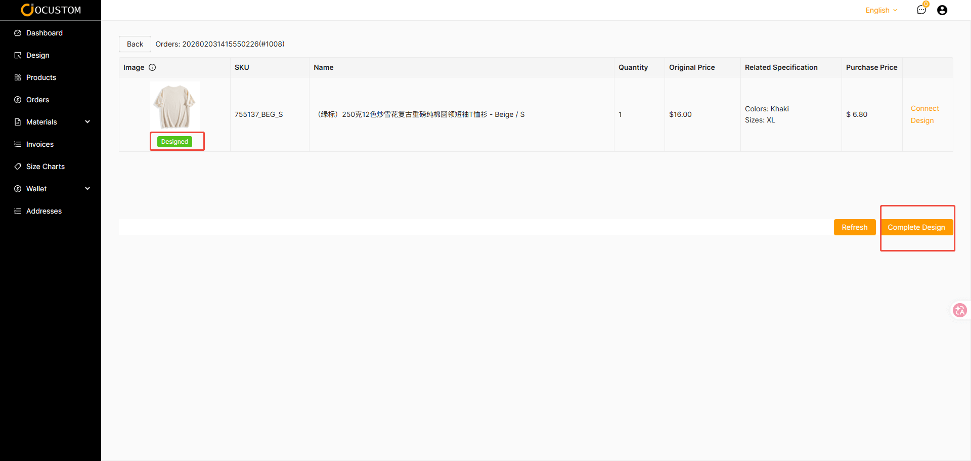 The system background thread will generate the product renderings. The status will update to “Designing.” You can click the refresh button to check the product generation status.