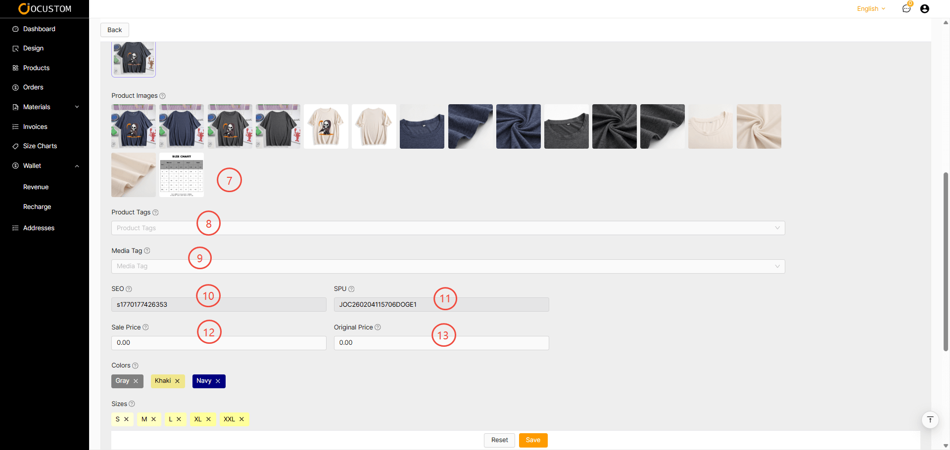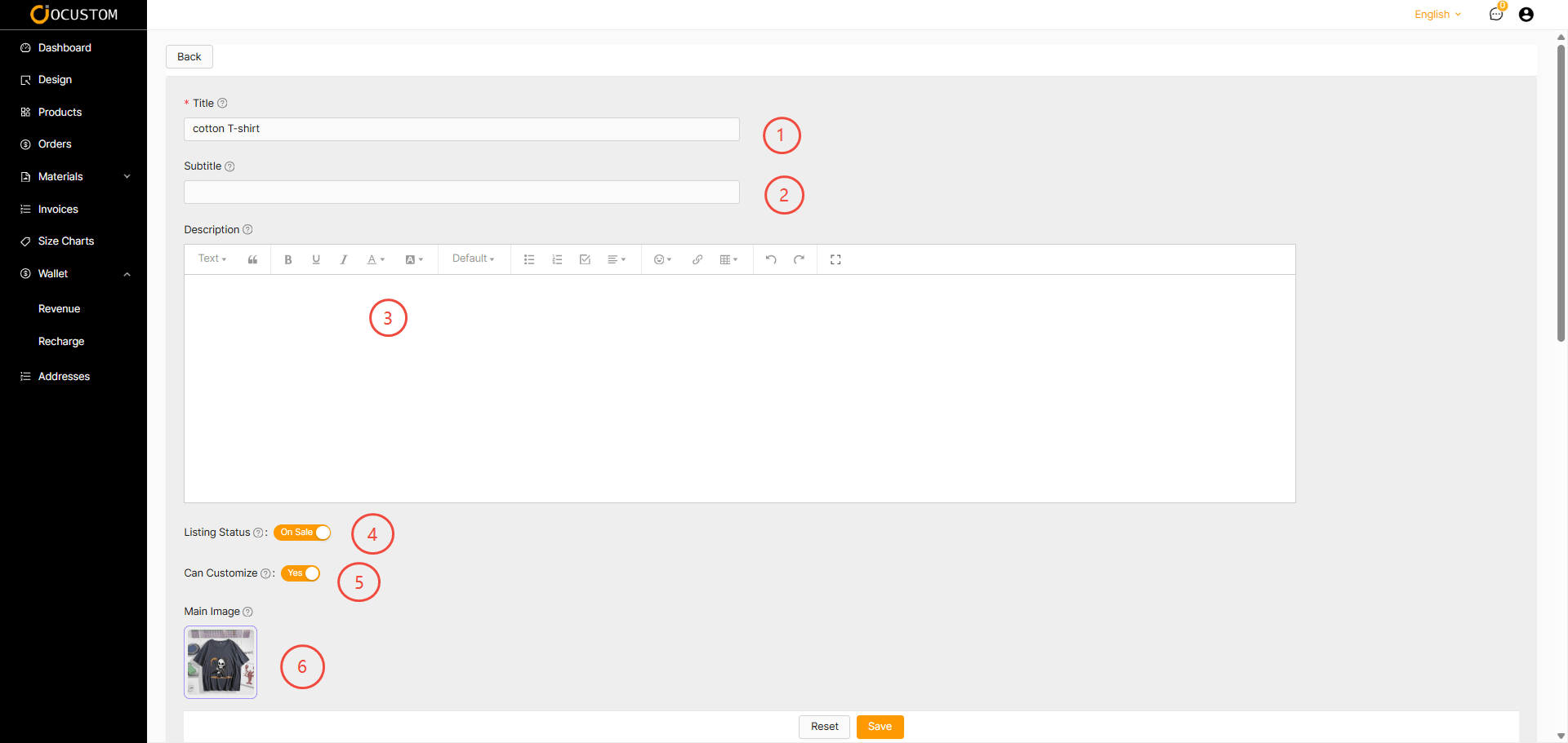 Edit Product Information Interface